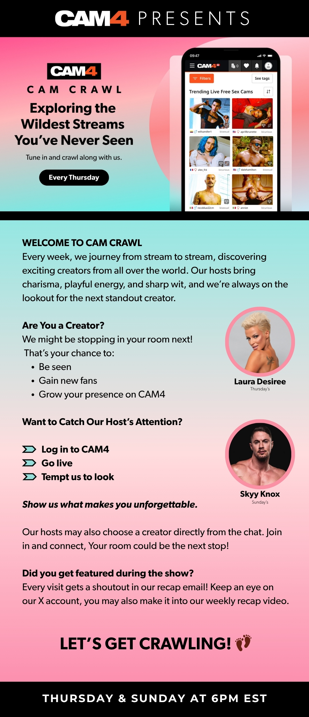 Don't miss camcrawl's next show on BAM Ebony Cams.